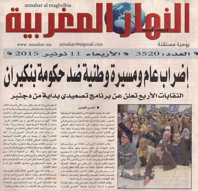 إضراب يوم 10 دجنبر والمحطات النضالية للمركزيات النقابية الأربع في بعض الصحف الوطنية